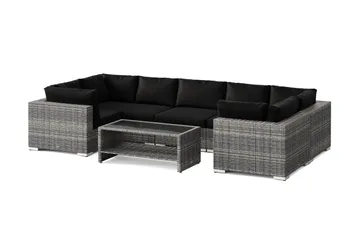 Bahamas Hörnmodul utomhus i konstrotting, Grå / Svarta dynor