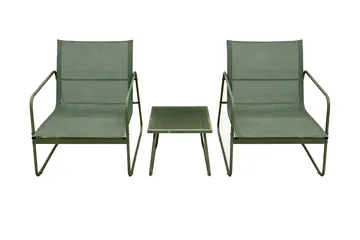 Pelanda Loungegrupp - Soffa och 2 fåtöljer i stål soffbord med frostad glasskiva, Grön