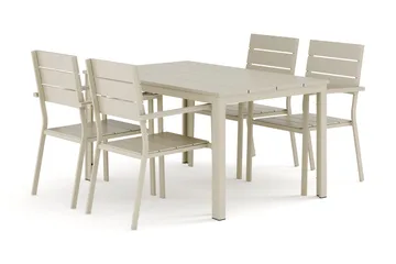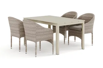Tunis utomhus matgrupp 140x90 cm med 4 Thor fåtöljer, Beige/Beige