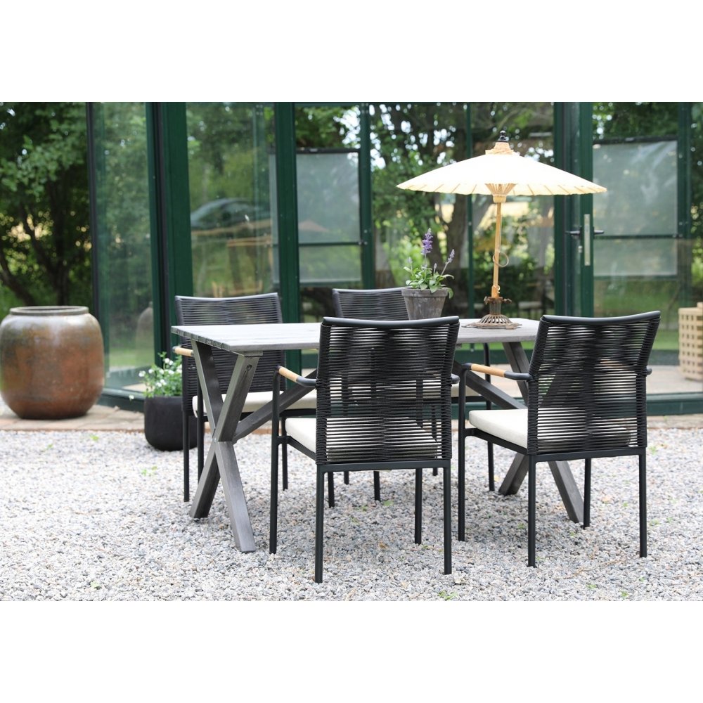 Utematgrupp: bord med 4 st karmstolar - Grå/Teak/Svart