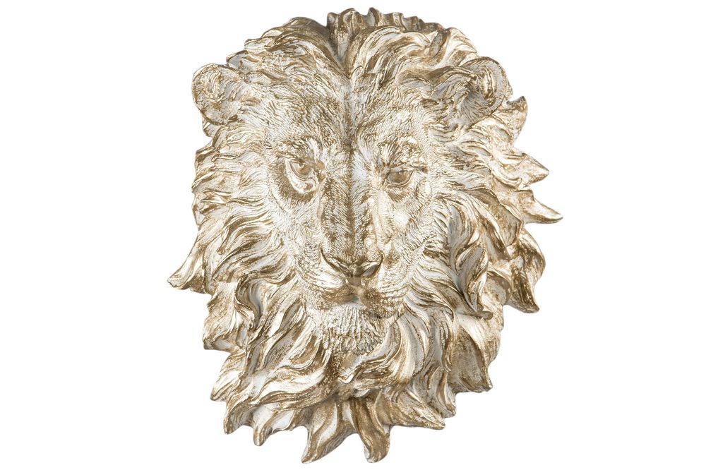 Väggdekoration Lejon - Guld/vit