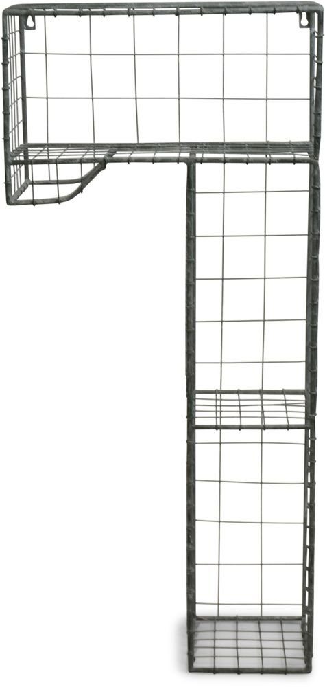 En häftig och stilren vägghylla i metall och nät som lätt monteras på plats.