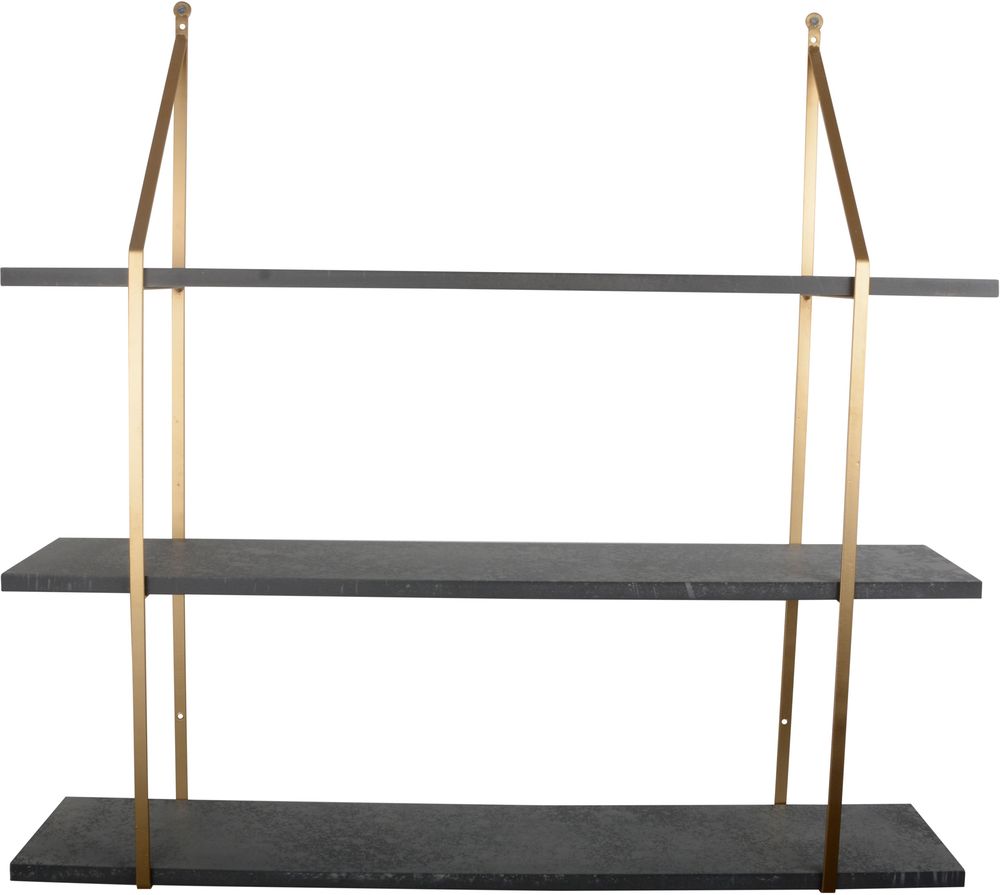 En snygg vägghylla med en tidlös design. Själva ramen är av guldfärgad metall och hyllplanen är av MDF. Monteras lätt på plats.