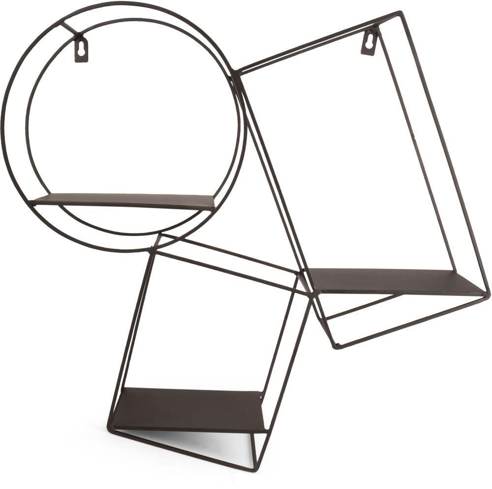 En snygg och konstnärlig vägghylla i svart metall som är lätt att montera på plats.
