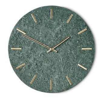 Stilfull grön väggklocka i marmor med guldfärgade visare. Exkl. 1,5V AA batterier.