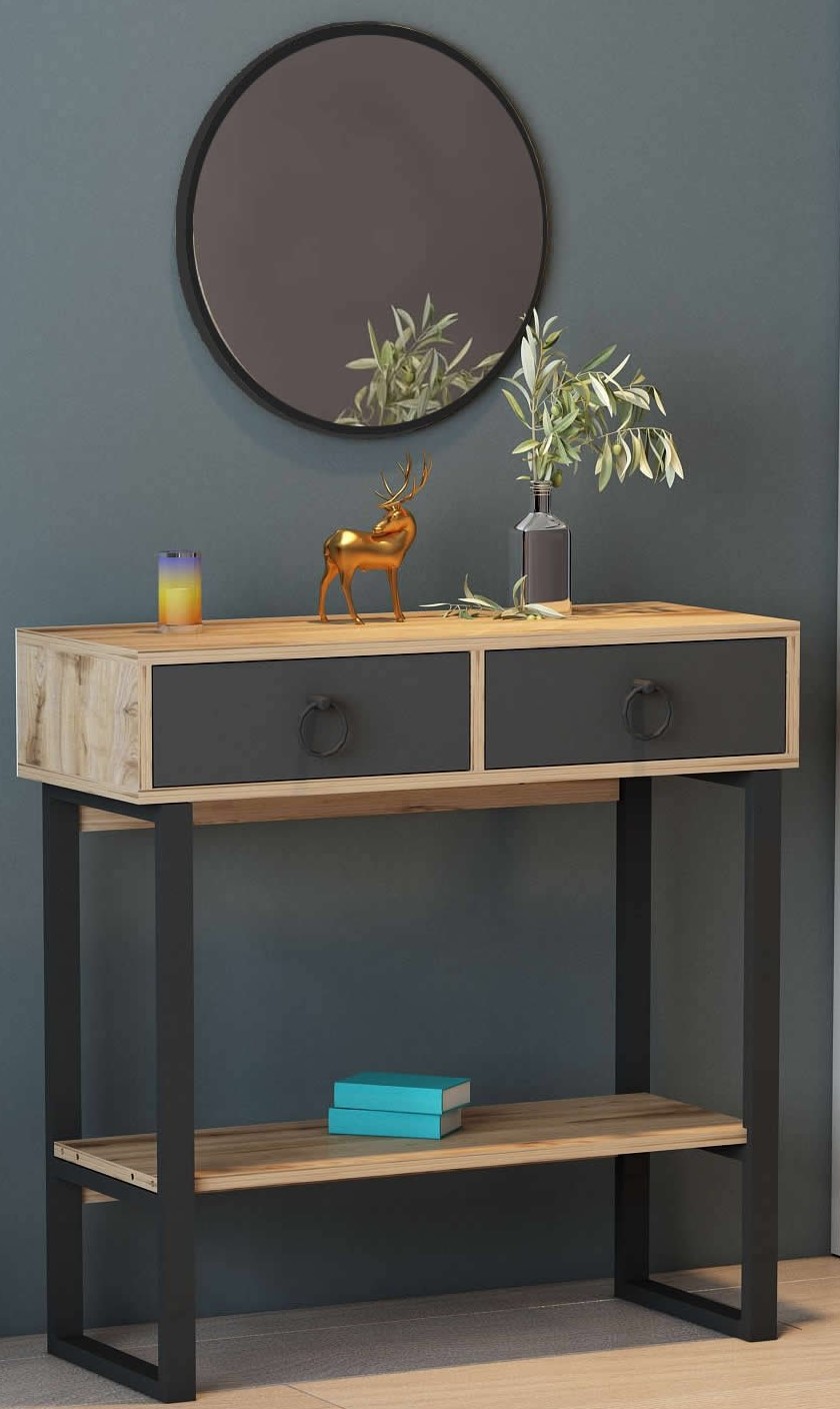 Valery avlastningsbord med spegel 90 x 35,3 cm - Antracit/mörkbrun