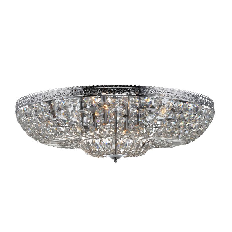 Vanadis vackra taklampa med en elegant design. Tillverkad i fint mönstrad kromad metall med vackra brilliant prismor. Fast installation med upphängning i U-bygel eller skruvar. 12x E14 sockel för maxeffekt på 40W. Lampan monteras simpelt på plats och passar perfekt in i flera miljöer.
