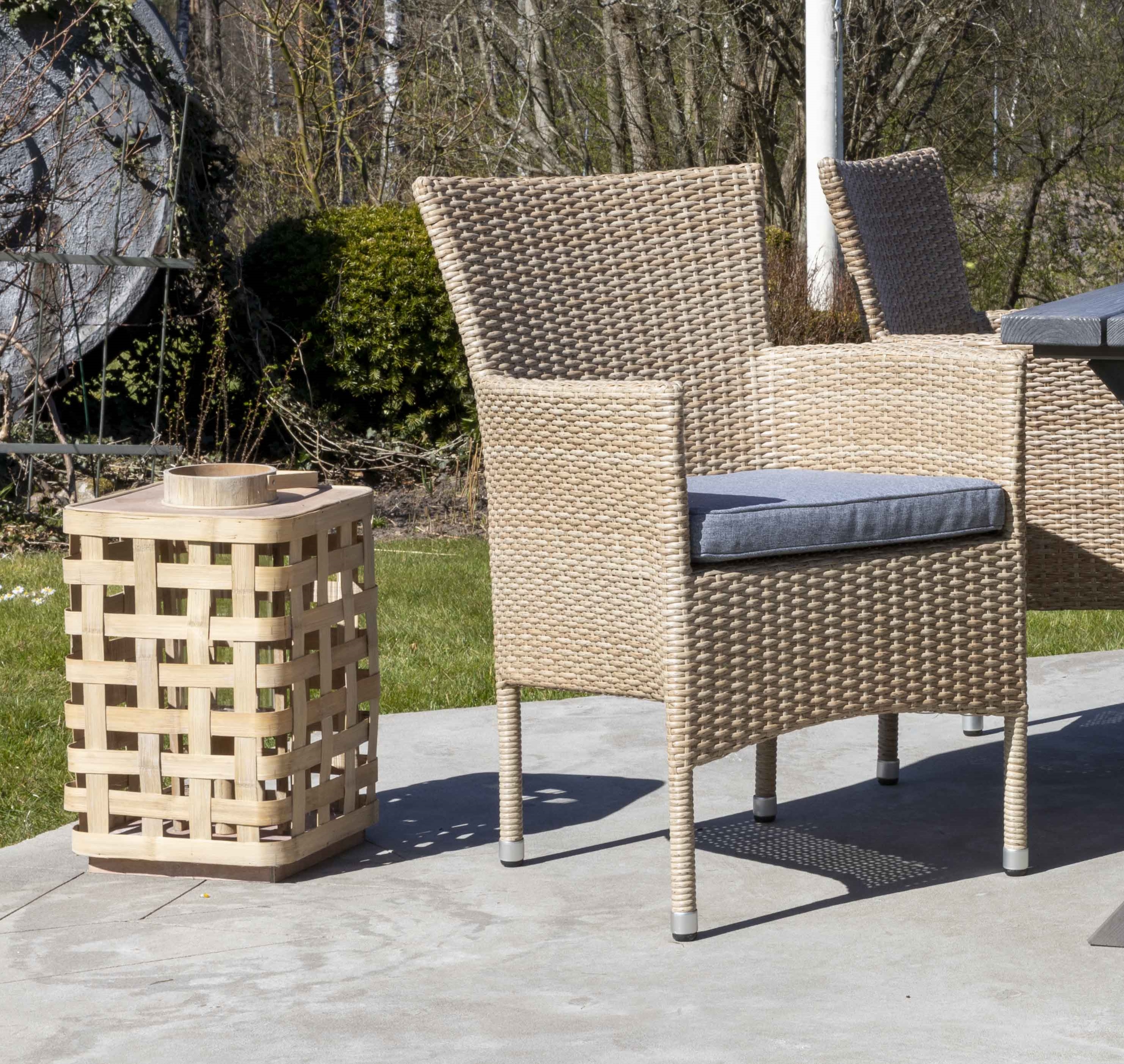Vancouver är en klassisk konstrottingstol med hög rygg. Perfekt som matstol till uteplatsen i naturfärgad konstrotting med dyna.