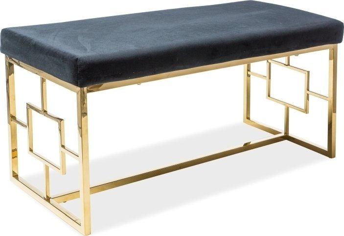 Sittbänk i metall. Klädd med polyestertyg i sammetsimitation.