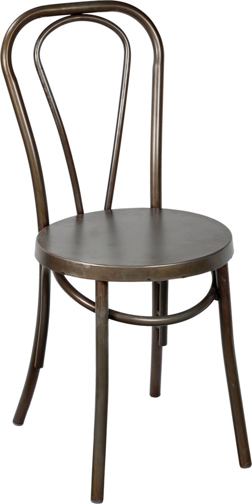 Modern och stilig stol i zinkfärgad metall. Runda och harmoniska former, vintagebehandlad.