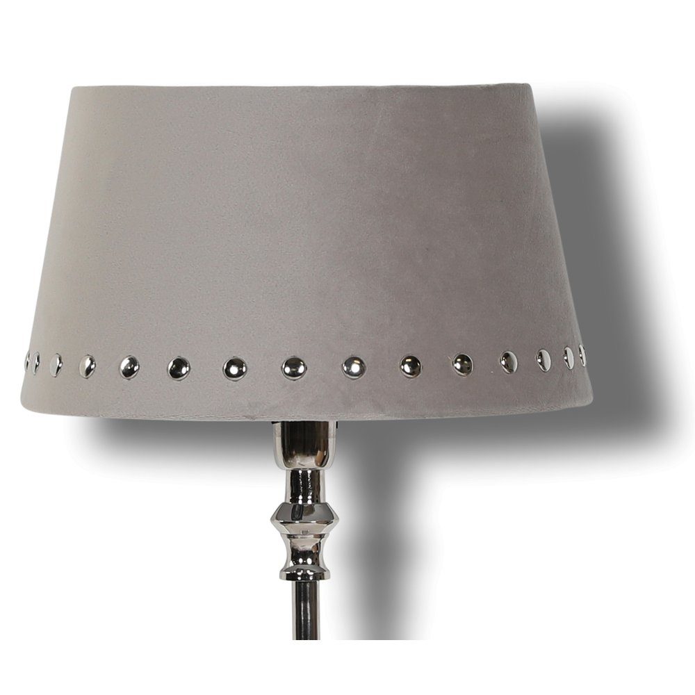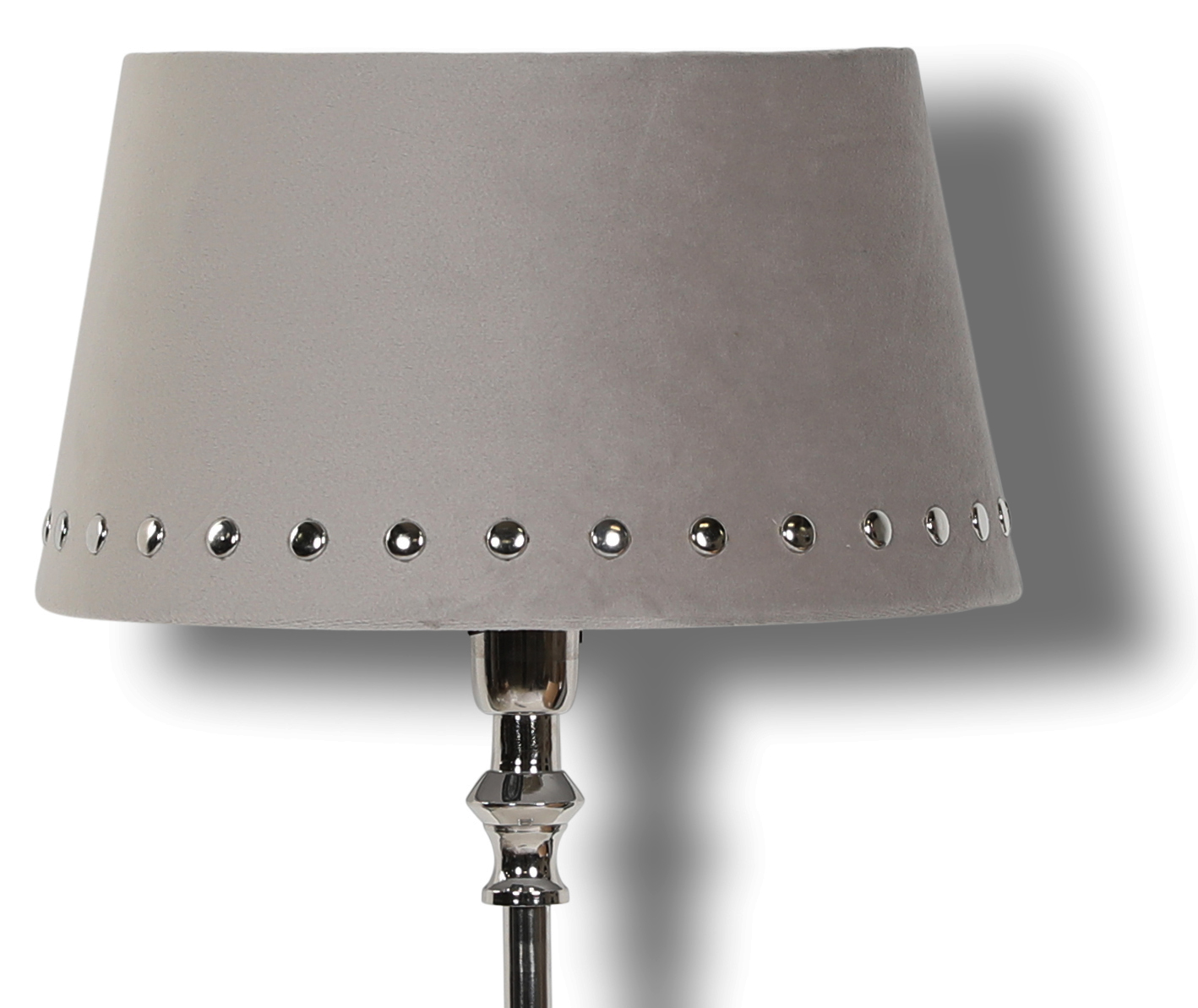 Velvet lampskärm i en exklusiv design med grått sammet och nitar i krom. Passar både E14 och E27 fattning.