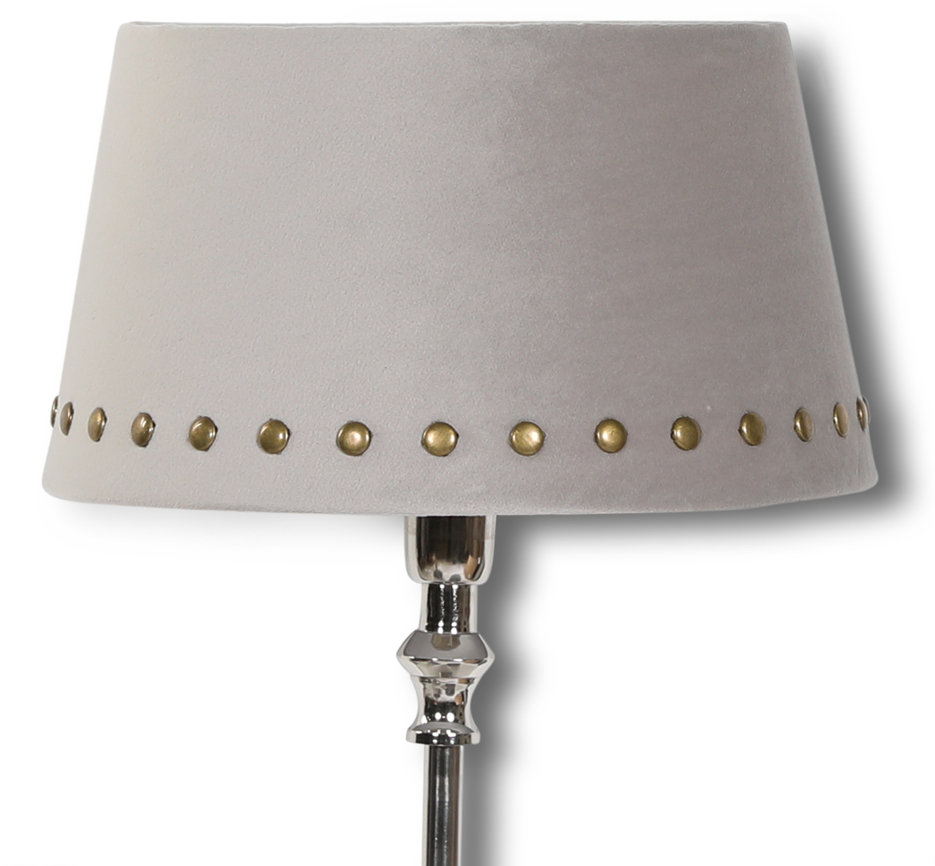 Velvet lampskärm i en exklusiv design med beige sammet och nitar i mässing. Passar både E14 och E27 fattning.
