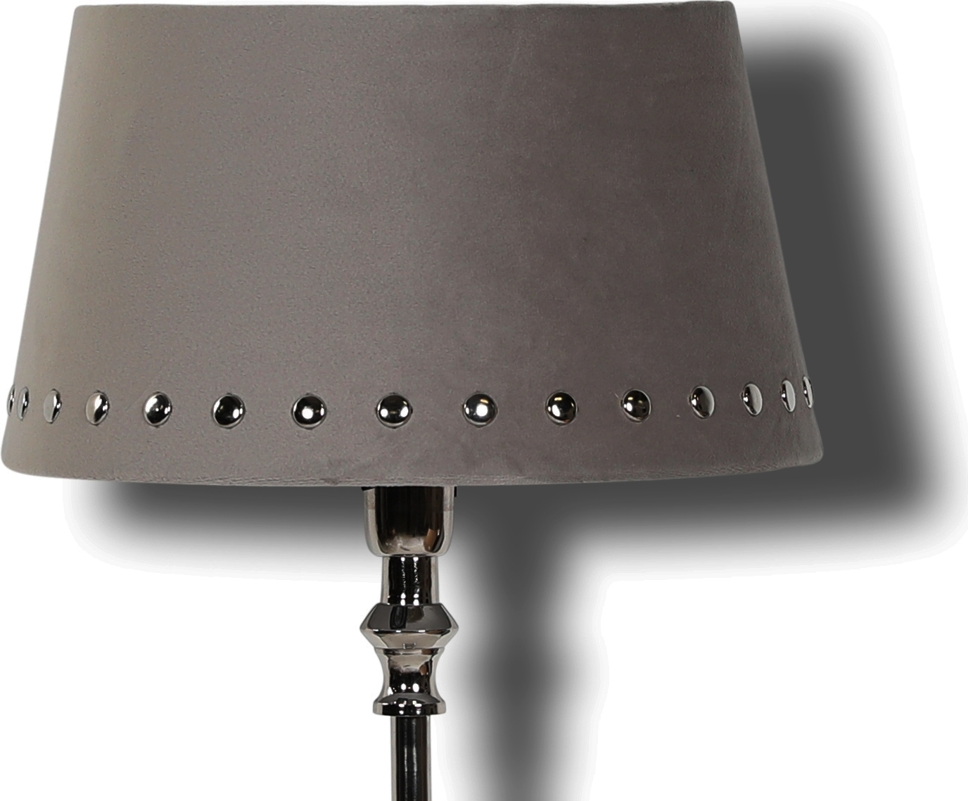 Velvet lampskärm i en exklusiv design med grått sammet och nitar i krom. Passar både E14 och E27 fattning.