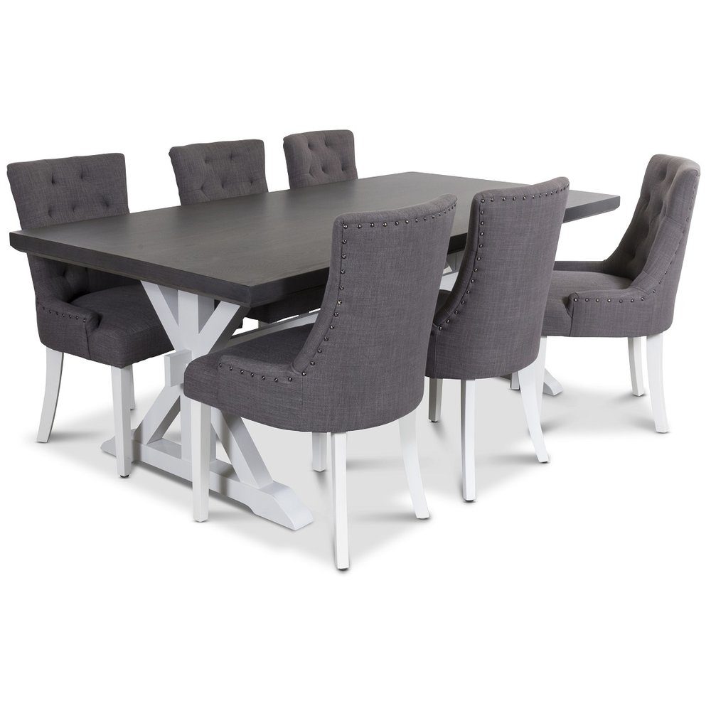 Ventos matgrupp inklusive 6 st Tuva stolar i grått tyg