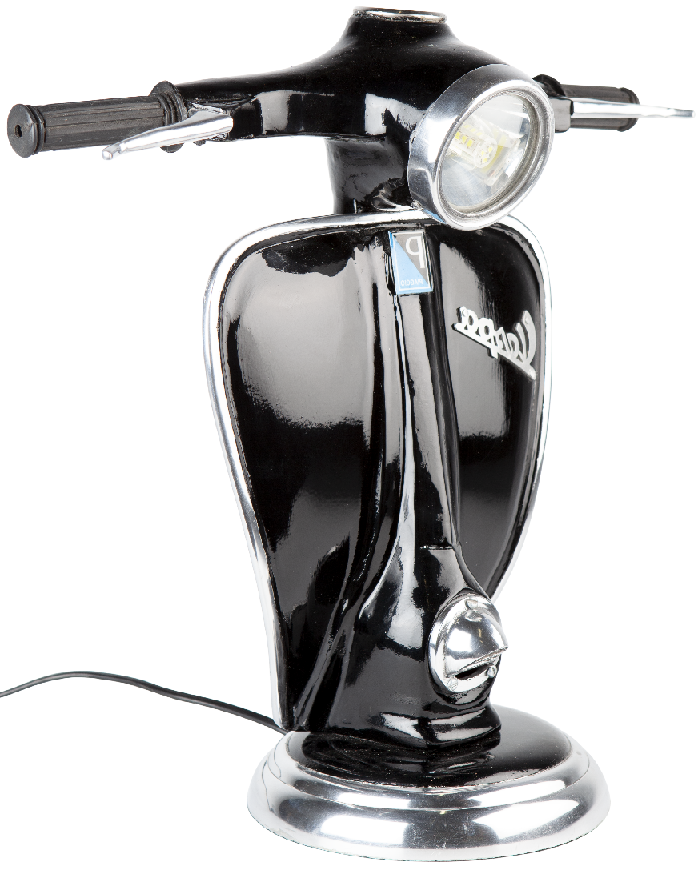 Vespa produkterna har fräcka funktioner och möbler som väcker uppmärksamhet. Vespa bordslampa med fungerande belysning från en gammal moped.