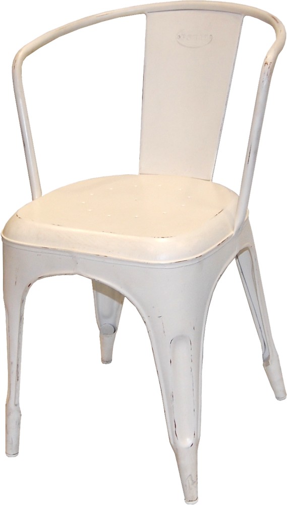 Klassisk metallstol i vintage-utförande. En praktisk stol som lätt kan förvaras då den är stapelbar.