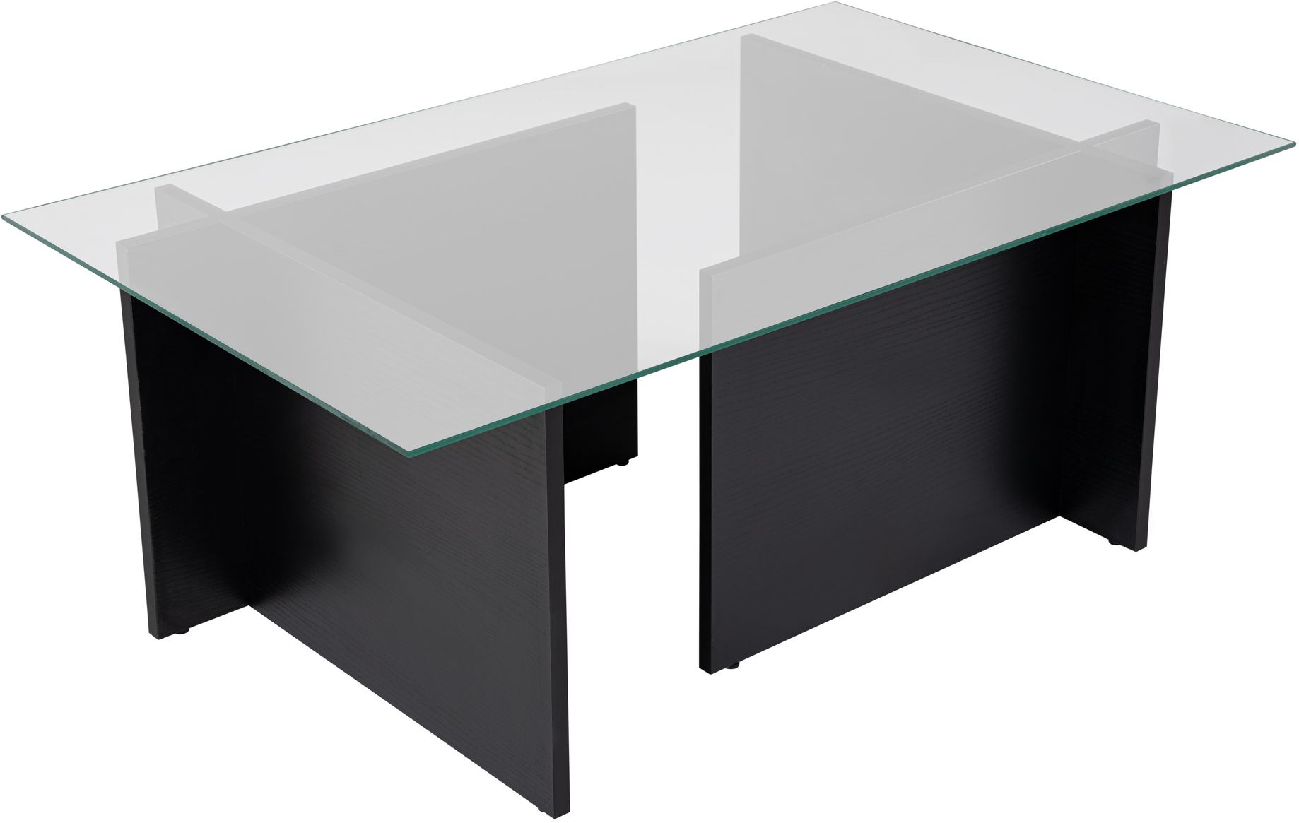 - Material: Bordsskiva av härdat glas. Underrede av melaminbelagd spånskiva