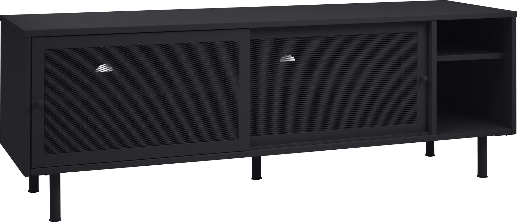 Mediabänk som kombinerar elegant design med robust funktionalitet. Tillverkat av högkvalitativ svart metall, som inte bara säkerställer lång hållbarhet, utan också tillför en sofistikerad atmosfär till alla rum.