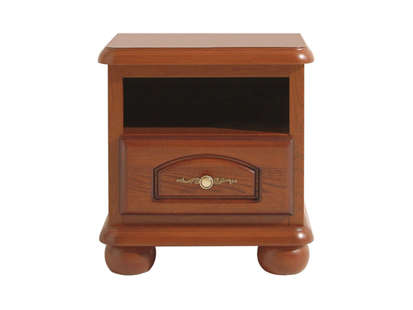 Ett sängbord i valnöts- och kastanjeimitation, tillsammans med de runda formerna och mässingshandtagen blir sängbordet ett klassiskt inslag i ditt sovrum. Sängbordet är praktiks med en låda och ett öppet fack ovanför och eftersom det till storleken är litet kan man få plats med det även i mindre sovrum.