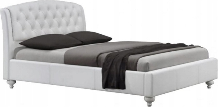 En lyxig sängram med en elegant design. Tillverkad i mycket hållbart trä och klädd med ett mycket behagligt vitt konstläder i högsta kvalitet. Sängen är anpassad för madrasser och resårbottnar med måtten 160x200 cm.