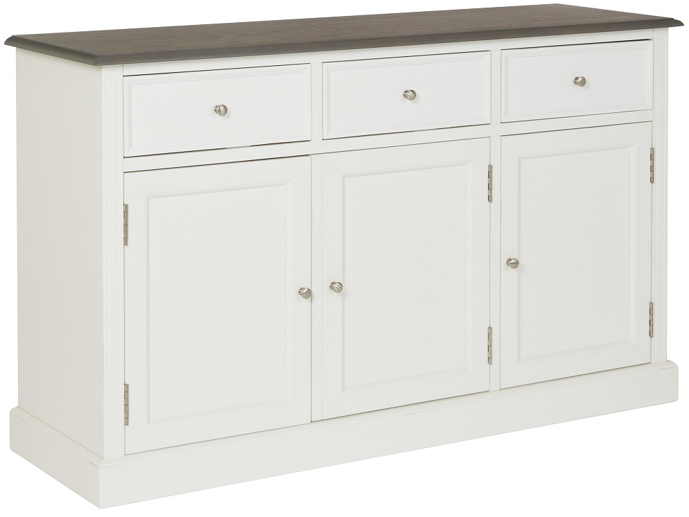 Viktoria är en serie med klassiska möbler med vintage-känsla. Antikvit lack med ett gråbrunt askfanèrad topp. Bra förvaringsmöjligheter med lådor och luckor som döljer förvaring.