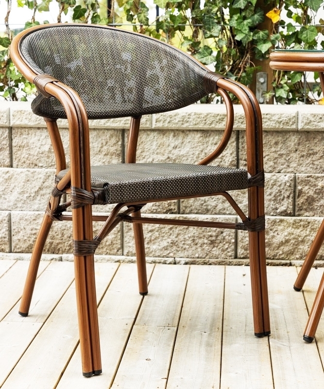 Upplev komfort och elegans i varje ögonblick med Vila Real cafestol. Denna vackra stol, med sitt tidlösa utseende och eleganta vintage-känsla, kommer att omfamna dig med stil och bekvämlighet. Stolen har ett smakfullt armstöd som ger extra komfort och gör den perfekt för långa samtal, kaffestunder och avslappnade måltider utomhus. Dess bruna ram och svarta sits skapar en elegant kontrast som ger din utomhusplats en sofistikerad och inbjudande känsla. Den är praktisk och enkel att rengöra, och dess stil gör den till ett utmärkt val för alla utomhusplatser.
