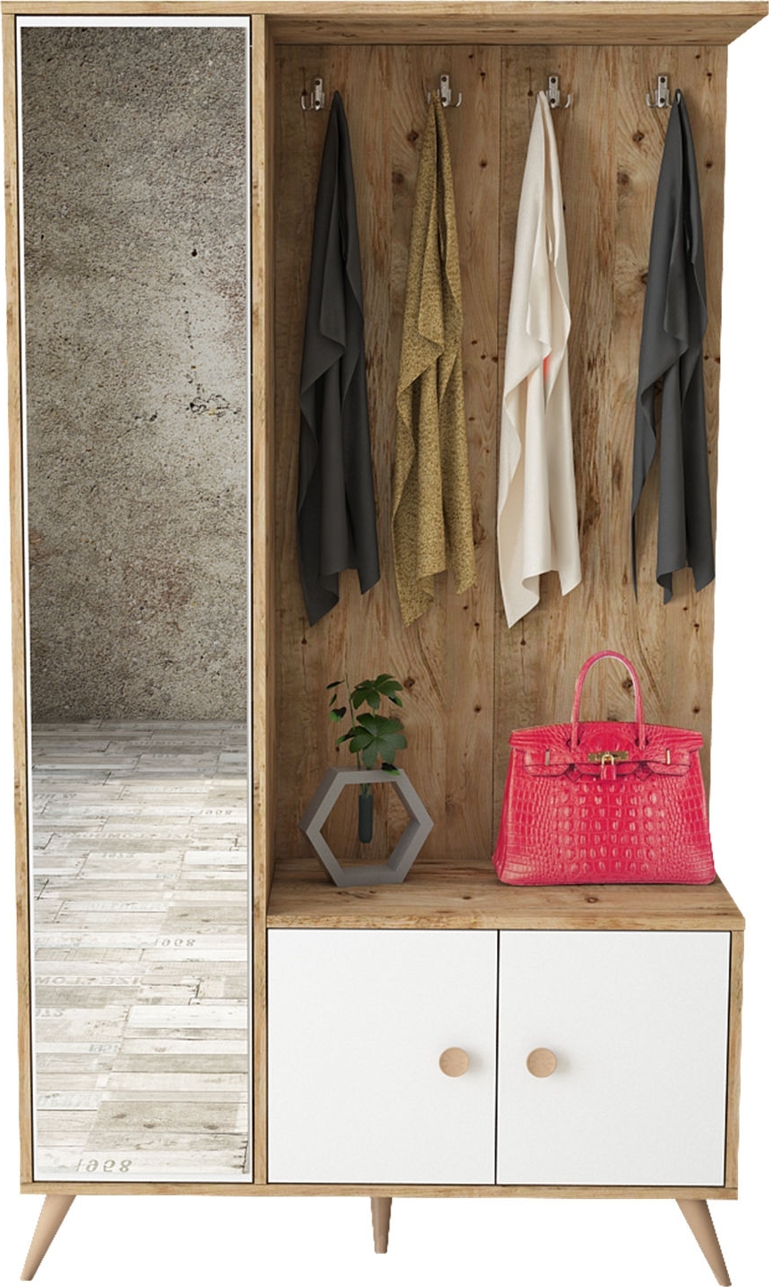 Hallmöbel av trä och metall.