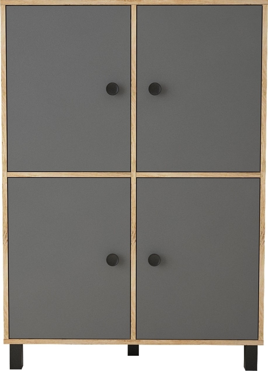 Skåp av trä och metall.