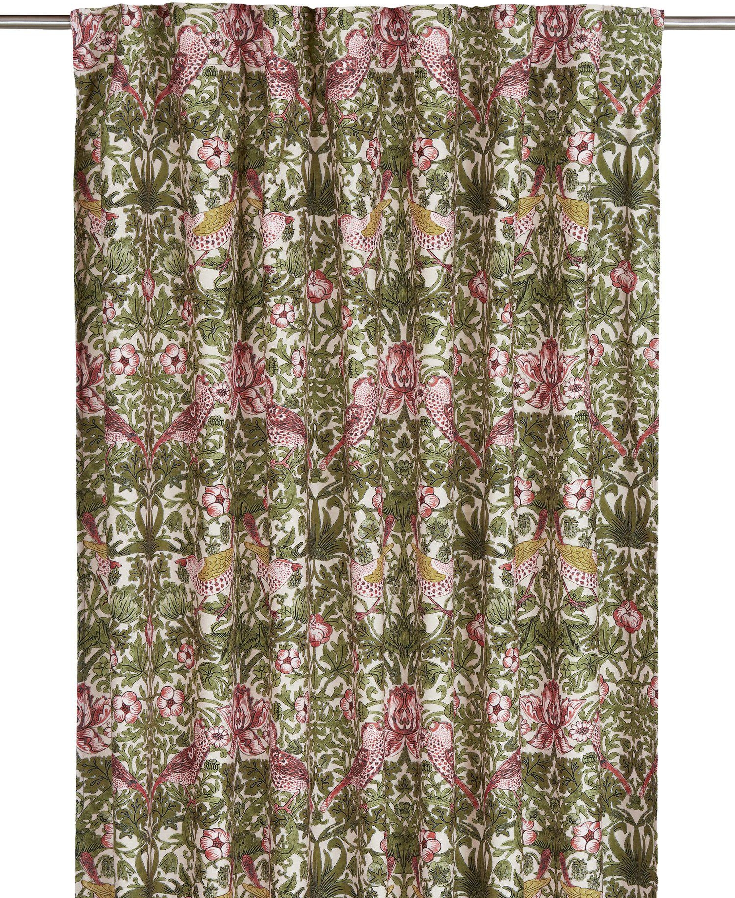 Klassisskt mönsterbild som för tankarna till den engelska traditionen. Tryckt på ett mjukt tyg med bomullskänsla med tungt fall. 2-pack multibandslängder med tryckt mönster. Multibandet är en flexibel lösning som gör att gardinen kan hängas upp antingen med fingerkrokar, räkor eller direkt på en stång beroende på vilken typ av veck och vilket fall du vill ha på gardinen. Använd snabbfållningsband för att få önskad längd på gardinen. Måttet på varje gardin är 130x250cm.