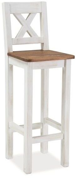 En fin barstol med en klassisk design. Underredet är tillverkat av vitlackerat trä och sitsen är av trä med ett härligt brunbetsat utförande.
