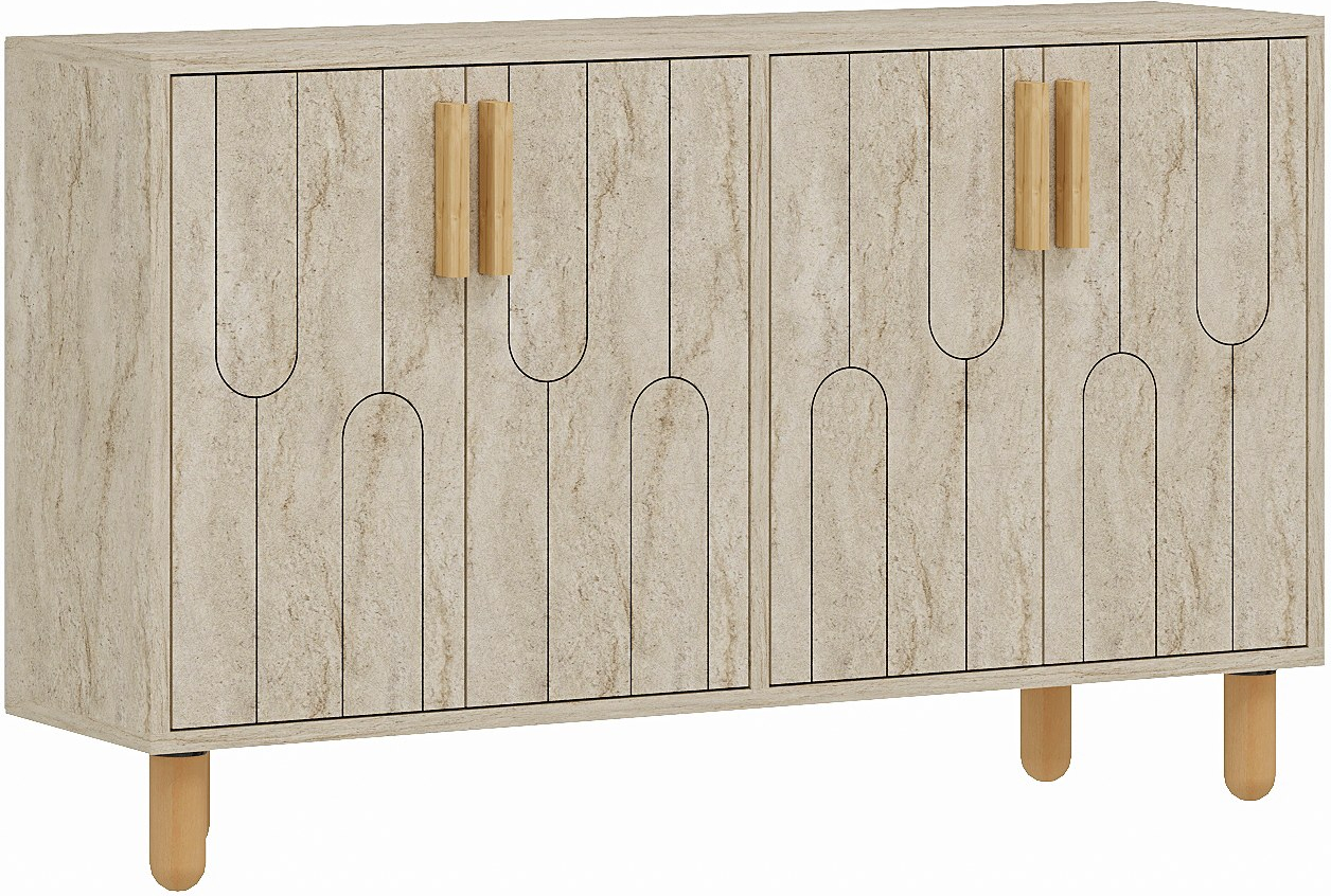 Vi presenterar den fantastiska skänken Vincent i travertin-look, en möbel som kommer att ge värme och elegans till alla rum i ditt hem. Den här skänken är inte bara en möbel, den är ett uttryck för stil och sofistikering.