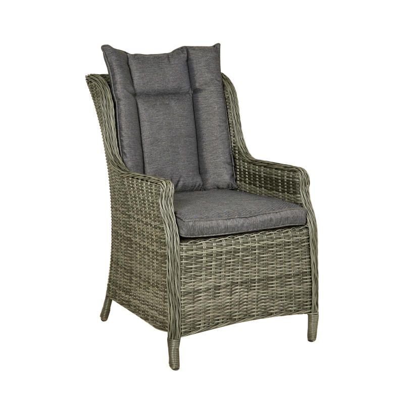 En mysig stol med en modern design. Tillverkad i metall och konstrotting. Stolen passar perfekt till uteplatsen, både för sig själv eller tillsammans i grupp med ett snyggt bord.