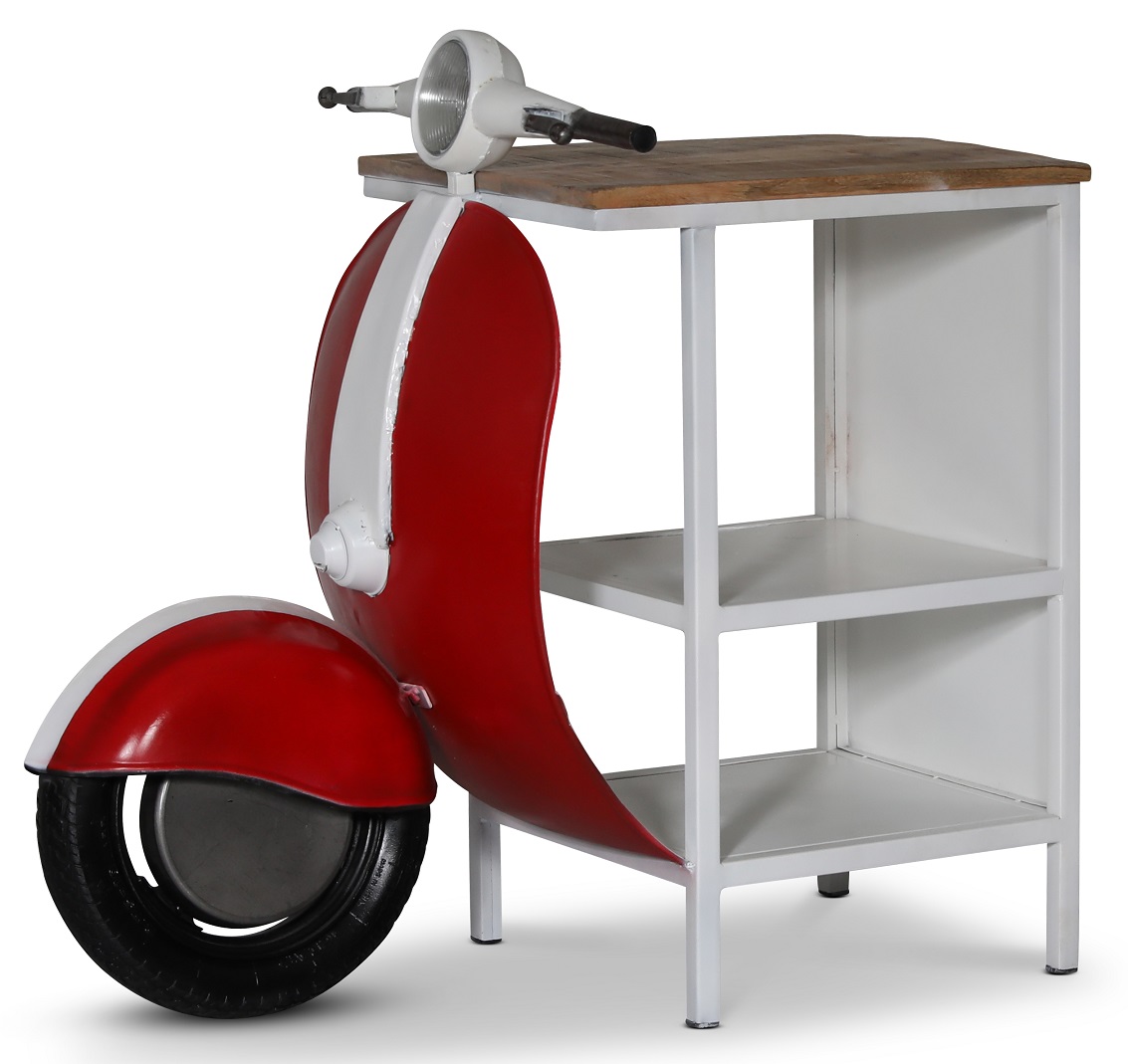 Denna klassiska Vespa som bardisk är något för entusiasten. Topp av massivt mangoträd, stomme av metall färgad i rött och vitt. En originell möbel med stil.