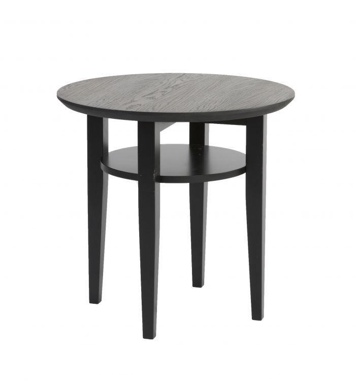 Snyggt mindre soffbord med en stilren design. Tillverkad helt i trä med en bordsskiva i mörkbetsad trä och ben och underhylla i svartmålat trä. Den praktiska underhyllan är perfekt för smart förvaring. Bordet passar perfekt in i hushållet tillsammans med dem flesta soffgrupperna. Bordet går även bra att använda som sidobord.