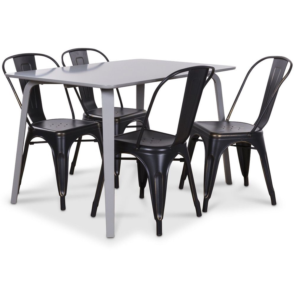 Visby matgrupp grått bord med 4 st Industry Plåtstolar - Grå / Svart Guld