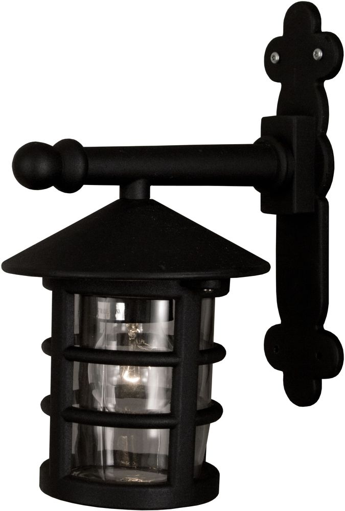 Utomhus vägglampa i svart metall och klarglas. Monteras lätt på husväggen.
