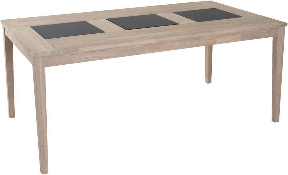 Matbord i massiv vitoljad ek med infällda granitskivor.