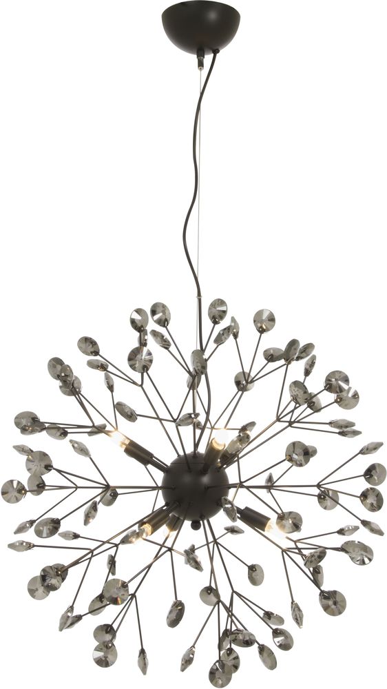 Taklampa i svart metall med kristall detaljer. Lätt upphängning i tak.