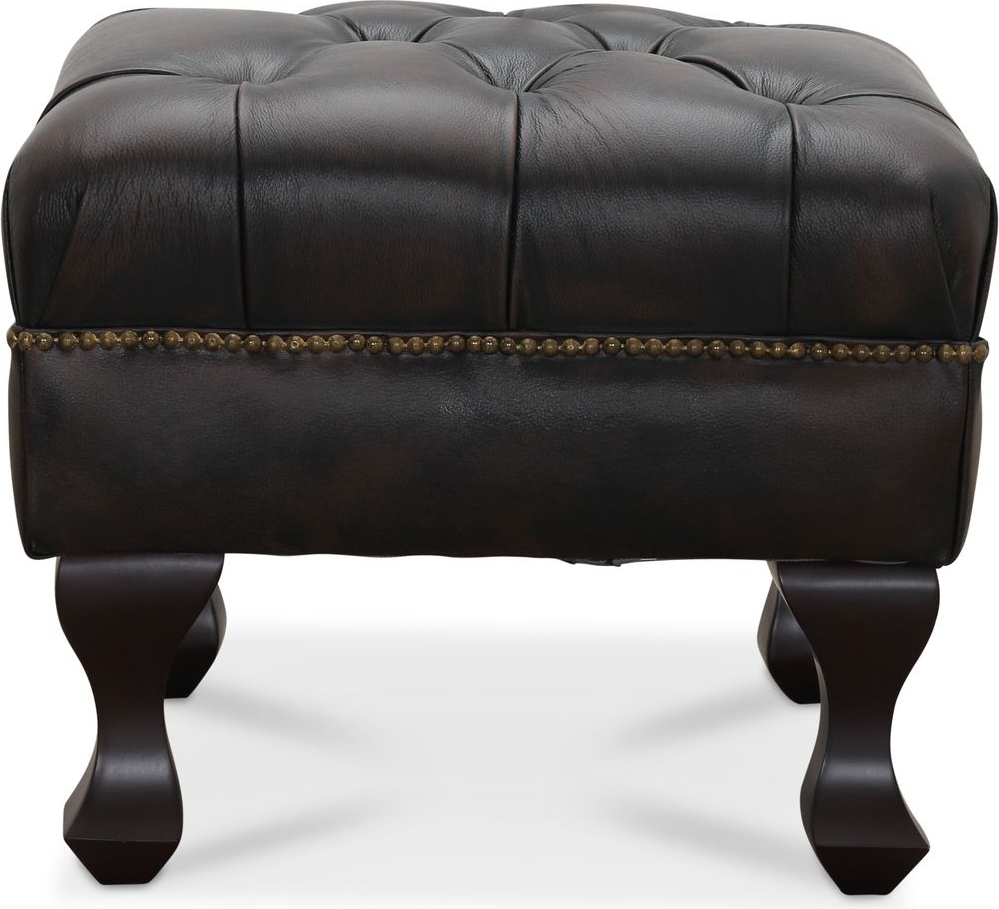 Vivaldi fotpall i genomfärgat anilinläder av högsta kvalitet med tvåtonseffekt i de tre klassiska färgerna oxblod,brun och svart. Modellen är inspirerad av chesterfield fotpall. Fotpallen har kallskum och inbakad pocketspringkärna. Fåtölj finns att köpa till.