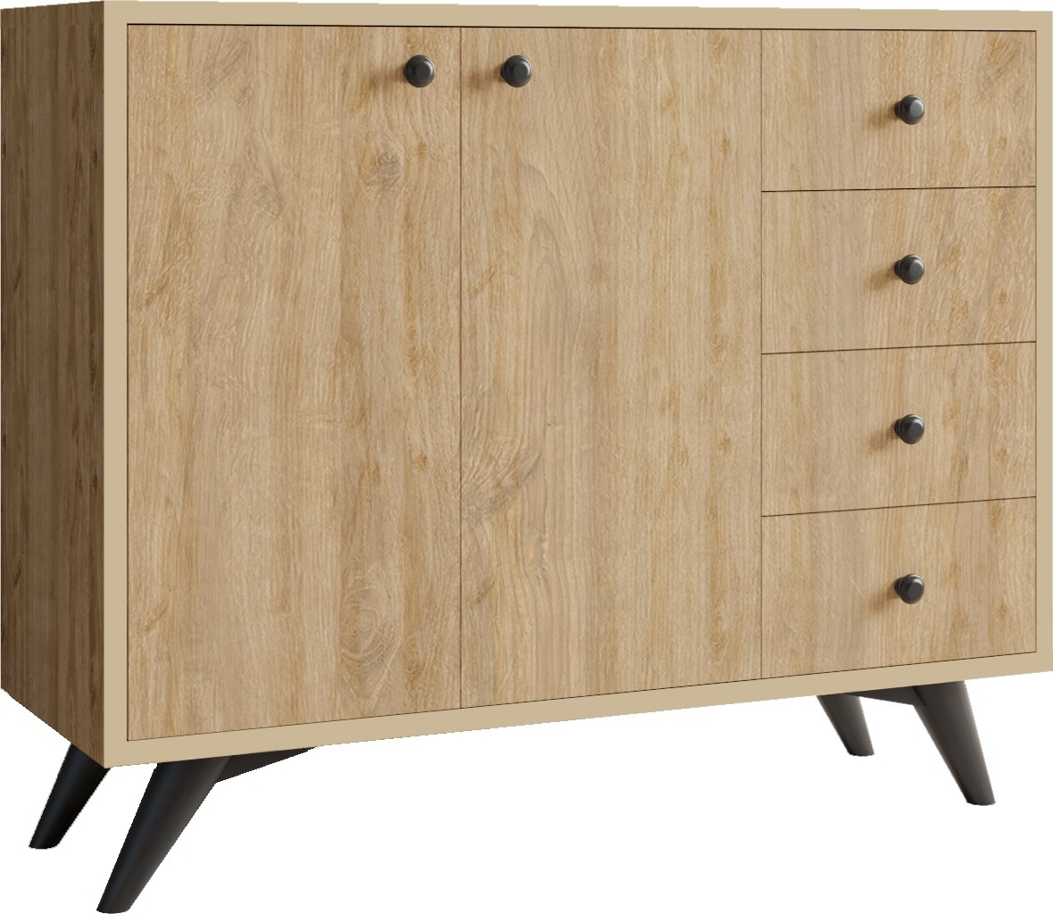 Förvaringsmöbel av melaminbelagd spånskiva.