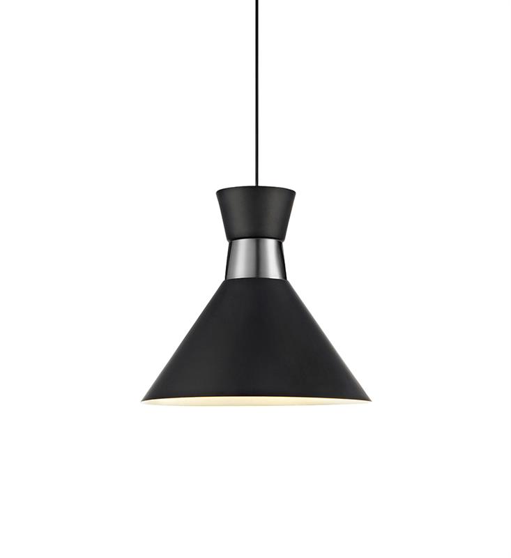 Waist stilrena taklampa. Tillverkad i svart metall med detaljer i krom. 1,5 meter sladd och upphäng med takkopp och takkrok. Stor lamphållare (E27). Max 60W glödlampa eller motsvarande styrka i halogen, lågenergi eller LED. Lampan passar perfekt in på flera platser i hushållet.