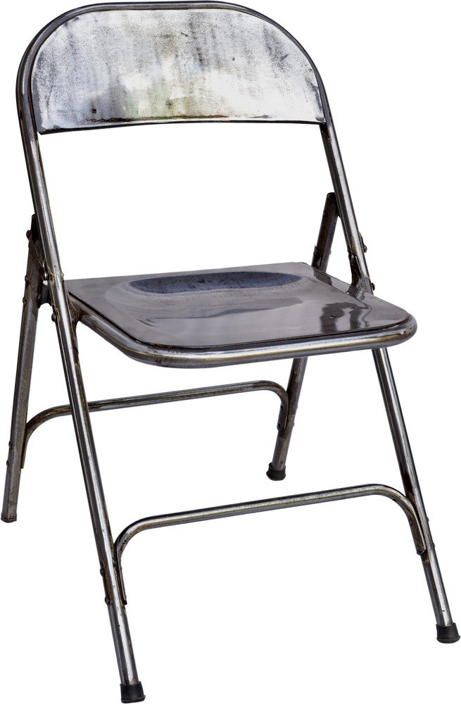 Klappstol i vintage av metall, kan fällas ihop och förvaras behändigt utan att uppta så mycket plats. Notera att varja stol är unik i färg.