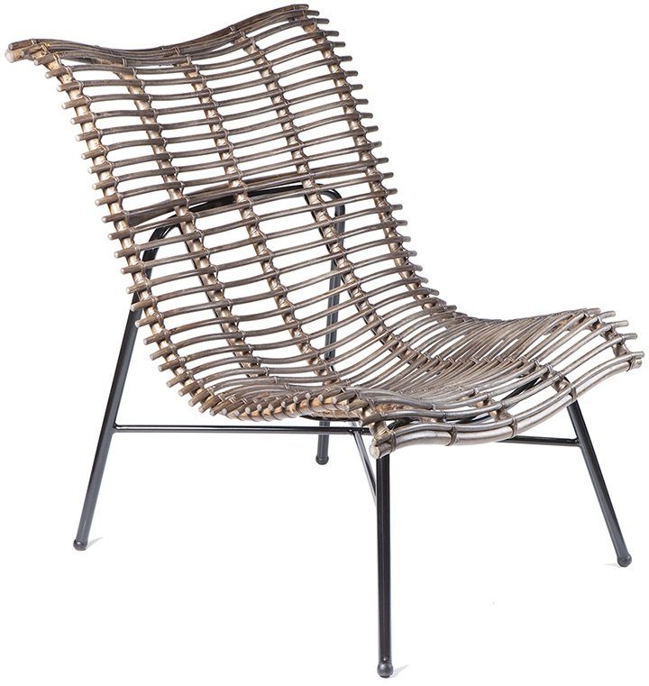Stilren fåtölj, tillverkad i häftigt brun rotting och svartmålade metallben. Passar perfekt in i hemmet att ha exempelvis vid bokhyllan för en mysig och behaglig läshörna.