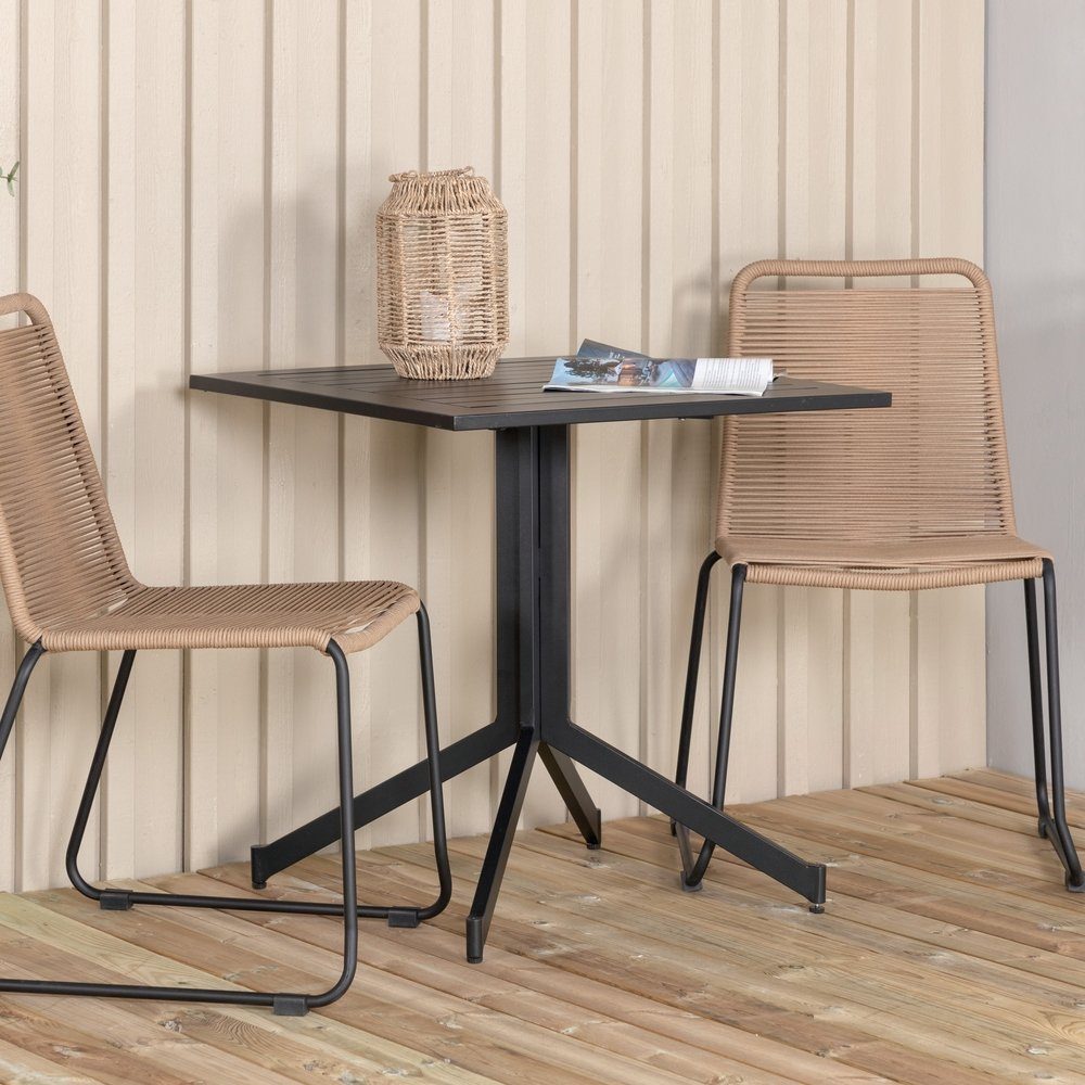 Way - ett stilrent cafébord i tidlös svart kulör och nätt design. Tillverkat i svart aluminium gör bordet lika praktiskt som tåligt. Den lätta vikten gör att bordet är enkelt att flytta och passar lika bra ute i trädgården som på den lilla balkongen. Njut av sommarens härliga stunder! Skötselråd: Utemöbler i aluminium och rostfritt stål bör rengöras regelbundet med vatten och mild tvål. Skölj alltid noggrant med rikligt med vatten, något som blir extra viktigt om möblerna är placerade på ett havsnära avstånd där salt kan transporteras via luften.