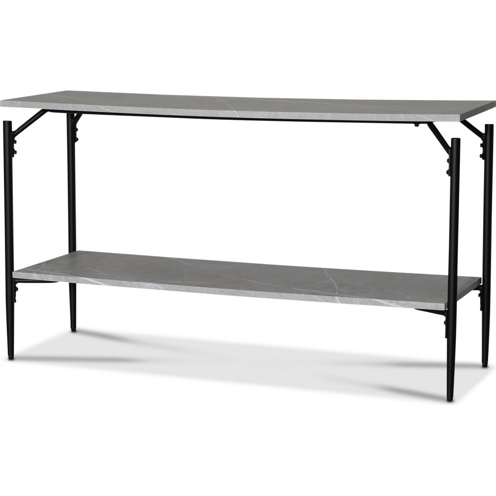 Wayne möbelserie är en prisvärd serie med finnes på utförande och designen. Konsolbord i ljusgrå marmorfoliering med svart metallunderrede där toppskivan ser ut att sväva och skapa mystik i rummet.