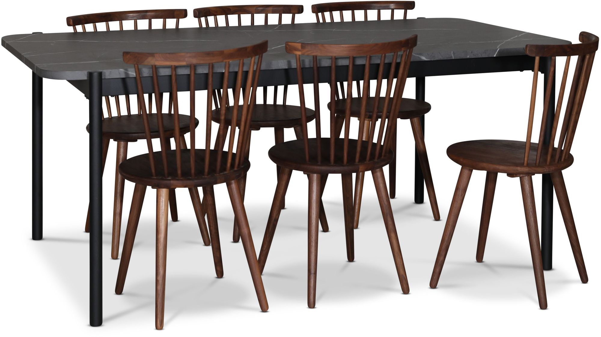 Wayne matgrupp 180x90 cm inkl. 6 st Castor valnöt pinnstolar - Grå marmorfoliering