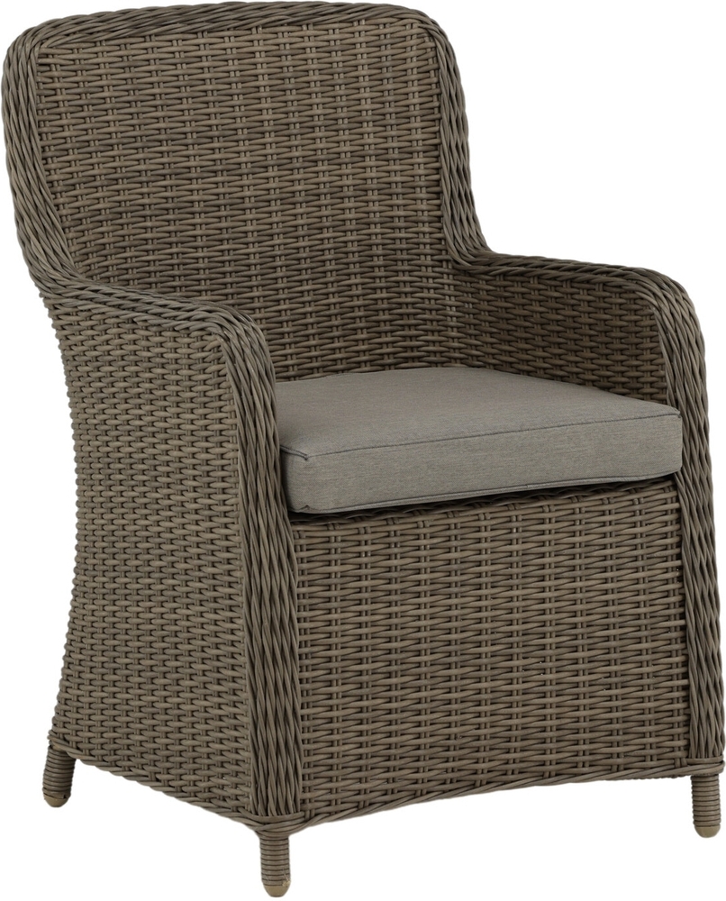 Modern, stilren och slitstark - vad mer kan man önska? I denna läckra karmstol från serien Wembley kan du njuta av många middagar tillsammans med dina nära och kära under sommaren. Med en stomme i jordnära beige aluminium och konstrotting får du en robust stol som står sig över tid. Sitt bekvämt i sommar och njut av härliga måltider utomhus!