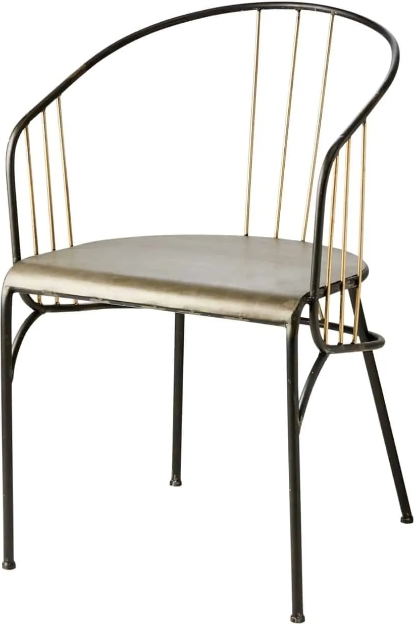 Karmstol som tillför en industriell känsla till hemmet. Stolen är av svart/mässingsfärgat järn och är antikbehandlad.