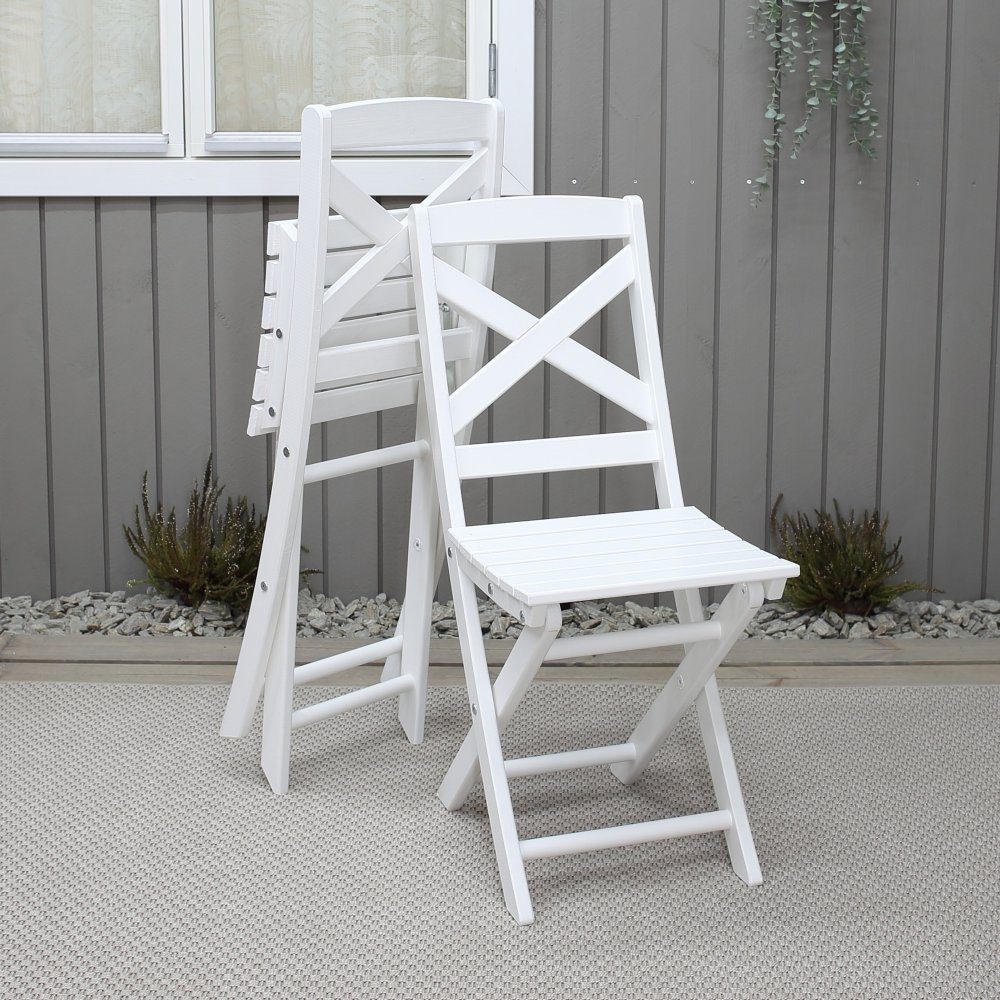 Wilma är en klappstol i vitmålad furu, klassiskt utförande. Hopfällbar så den praktiskt kan förvaras undan då den inte används.