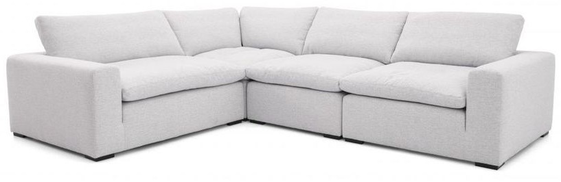 Mjuk och skön dunsoffa i hörnmodell, en soffa att trivas i. Sittdynorna har en grund av skumstoppning, toppad med en mix av bollfiber och dun. Även ryggdynorna är stoppade med bollfiber och dun. Detta gör att soffan fluffig och mjuk att sitta i.